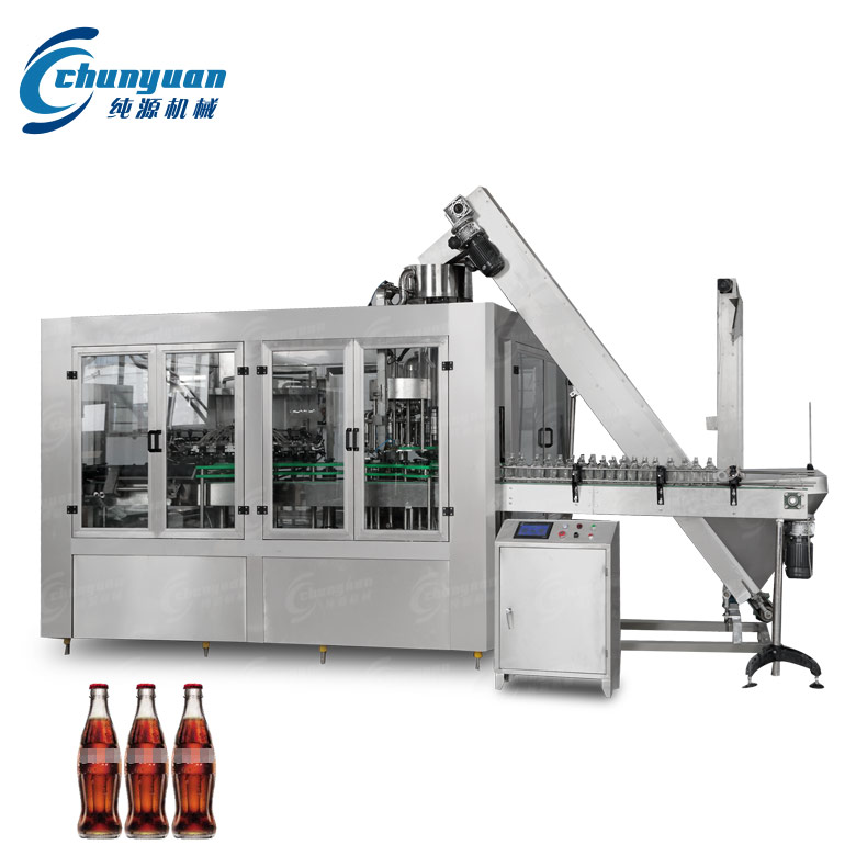 玻璃瓶碳酸飲料設備適用于玻璃瓶裝汽水、可樂、含汽飲料、碳酸飲料、雞尾酒、啤酒等飲料的生產。純源機械廠家生產供應的