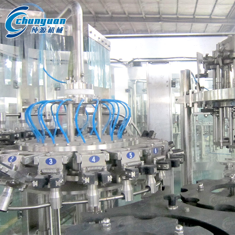 氣泡水灌裝設備選用優質的SUS304材料制作,主關件部件采用數控機床精密加工,氣泡水含汽飲料灌裝機械采用先進光電檢測各部件的運行狀況,具有無瓶不灌裝,無瓶不送蓋,自動化程度高。