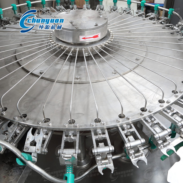 三合一純凈水灌裝機采用卡瓶頸傳動技術,實現全自動沖瓶、灌裝、旋蓋等工序,其自動化程度高;該純凈水灌裝設備的大部分電氣系統零件均采用國內外高質量產品,灌裝機與液體接觸的零件全部采用優質不銹鋼材料,具有耐磨、穩定、故障率低等特點。