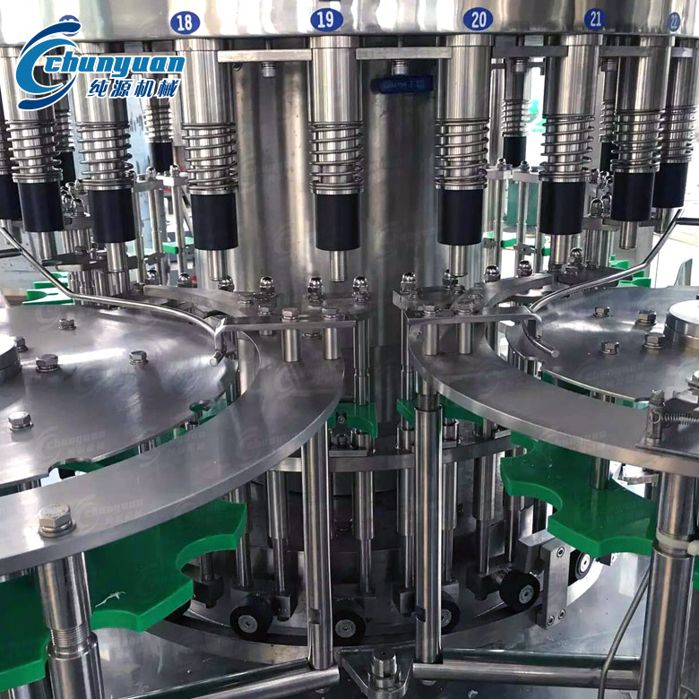 大瓶飲用水灌裝機(jī)灌裝速度快,液面控制穩(wěn)。采用鏈道進(jìn)瓶、沖洗、卡瓶口灌裝、封蓋、不受瓶子高矮限制,將瓶口、瓶頸、瓶蓋尺寸相同一致,隨意更換瓶型,更換瓶型同時(shí)需更換所有拔輪導(dǎo)板即可。擰蓋頭采用磁力扭矩式,實(shí)現(xiàn)抓蓋、擰蓋功能。