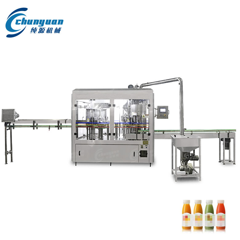 水果酵素灌裝設備選用微負壓重力式灌裝原理,灌裝快、穩、準,設有完善的溫控體系和物料回流體系,能滿意95℃以下熱灌裝技術要求,灌裝閥及物料進出管路無衛生死角,同時配有CIP自動清洗接口,封蓋前設有瓶口沖洗裝置,以確保瓶口無液料沾染杜絕發霉;