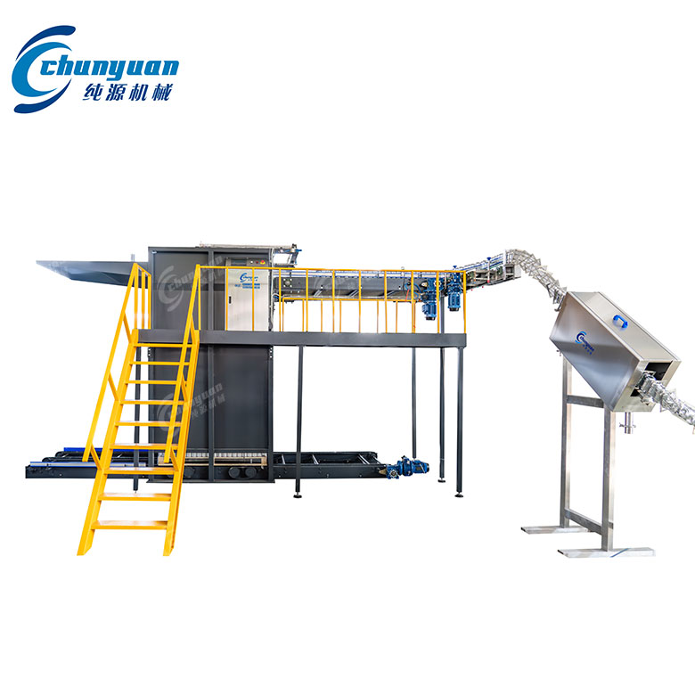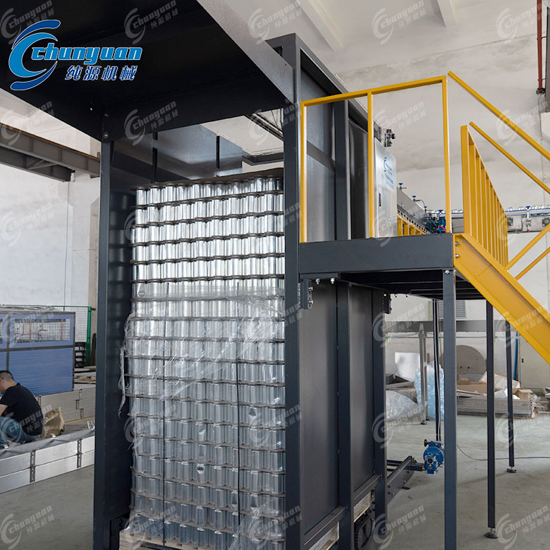 易拉罐卸垛設備通過特定的機械結構,將堆疊于棧板上的空罐,由下而上一層層的提升并推至輸送機上。整個過程由自鎖式升降系統裝置控制,能單獨調整上升或下降的速度,以適應不同的操作需求???。卸罐動作通常由電機帶動鏈輪、鏈條裝置進行,整層的空罐被推至網式輸送機上,然后回歸至準備位置,繼續將下一層推出???。