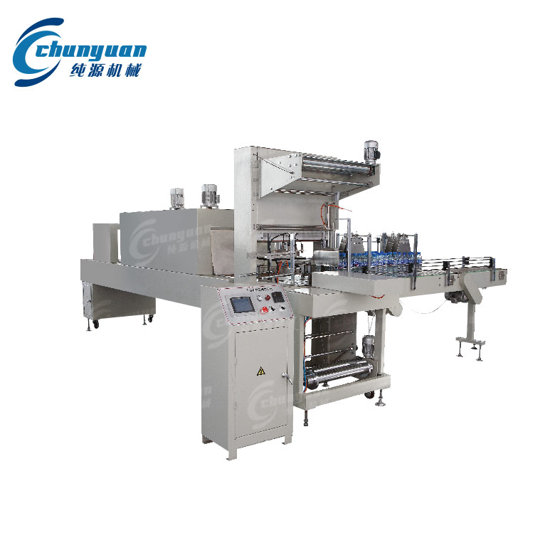 純源機械制造廠家生產的CY系列膜包機專門為包裝純凈水、礦泉水、飲用水、飲料、果汁、乳制品、啤酒、玻璃瓶等。實現全自動瓶子的傳遞與排列,薄膜包裝、封切、收縮、冷卻和塑造等。使用先進的恒溫熱膜綁定技術,快速密封冷卻保證密封強度更高。CY系列膜包機采用PLC程序循環自動控制與穩定、性能可靠。感應開關控制膜傳輸系統可靠地調整和控制膜傳輸長度減少損失,所有的傳輸系統由頻率變化的控制設備。
