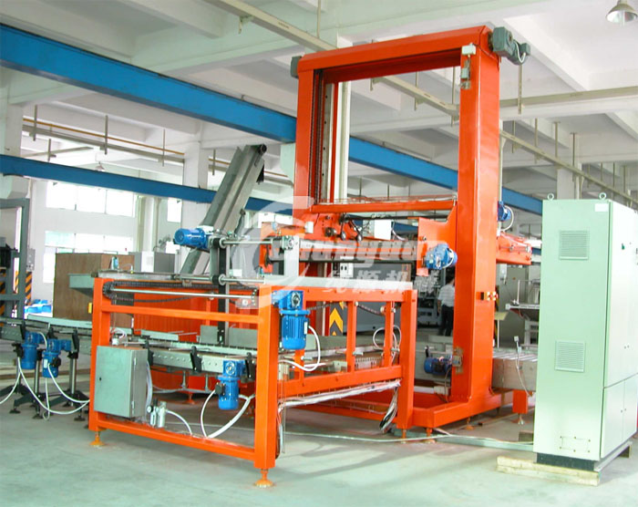 張家港市純源包裝機械生產的被廣泛應用于食品飲料行業,它的主要功能是將生產線上的飲料紙箱產品按設定好的順序和形狀碼在棧板上的設備。...